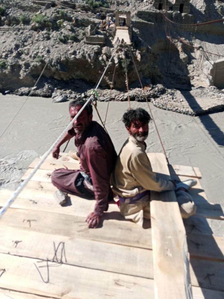 Nachdem im letzten Sommer die riesigen Schmelzwassermengen die mit Jeeps befahrbare Brücke über den Braldo